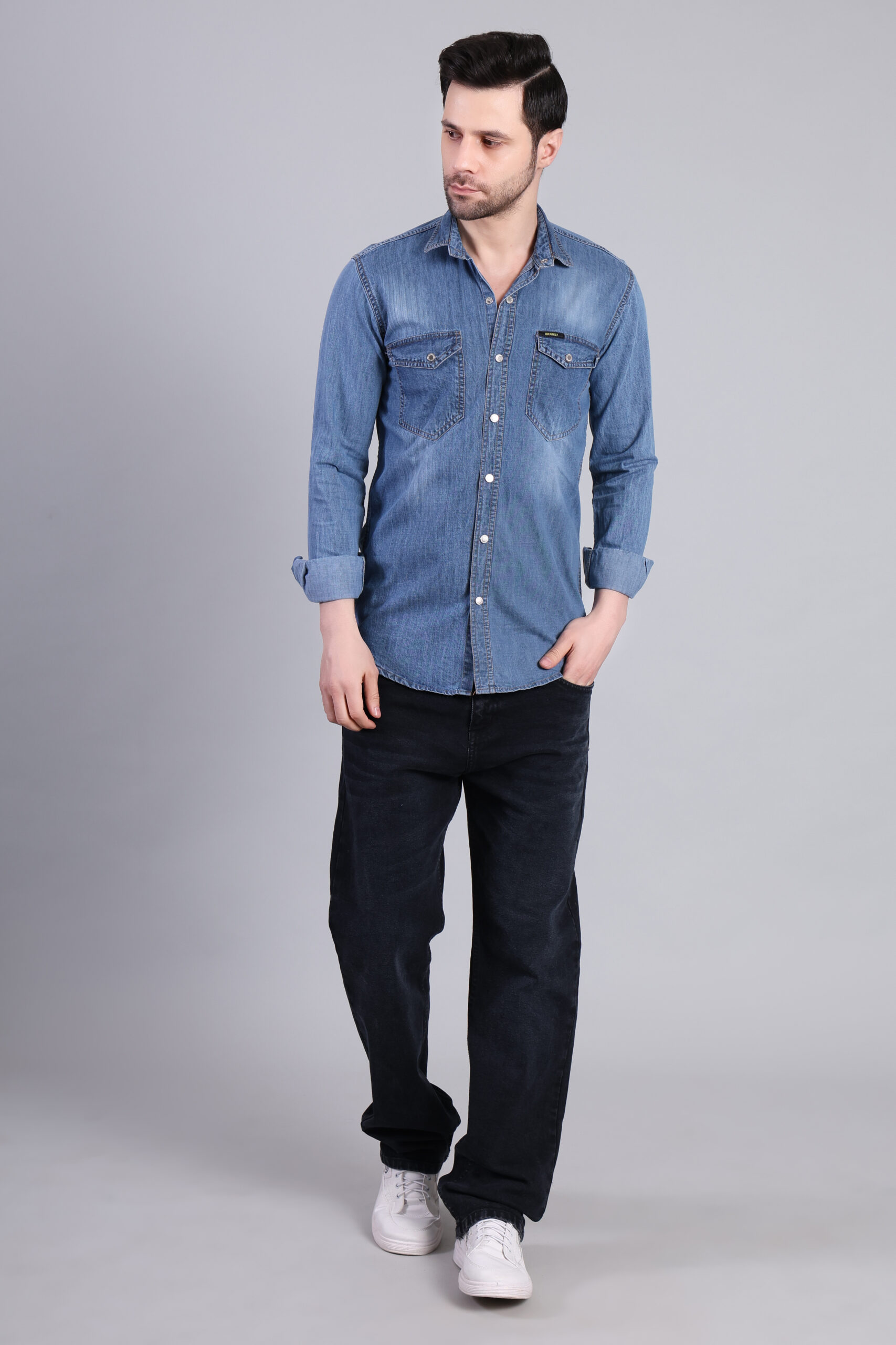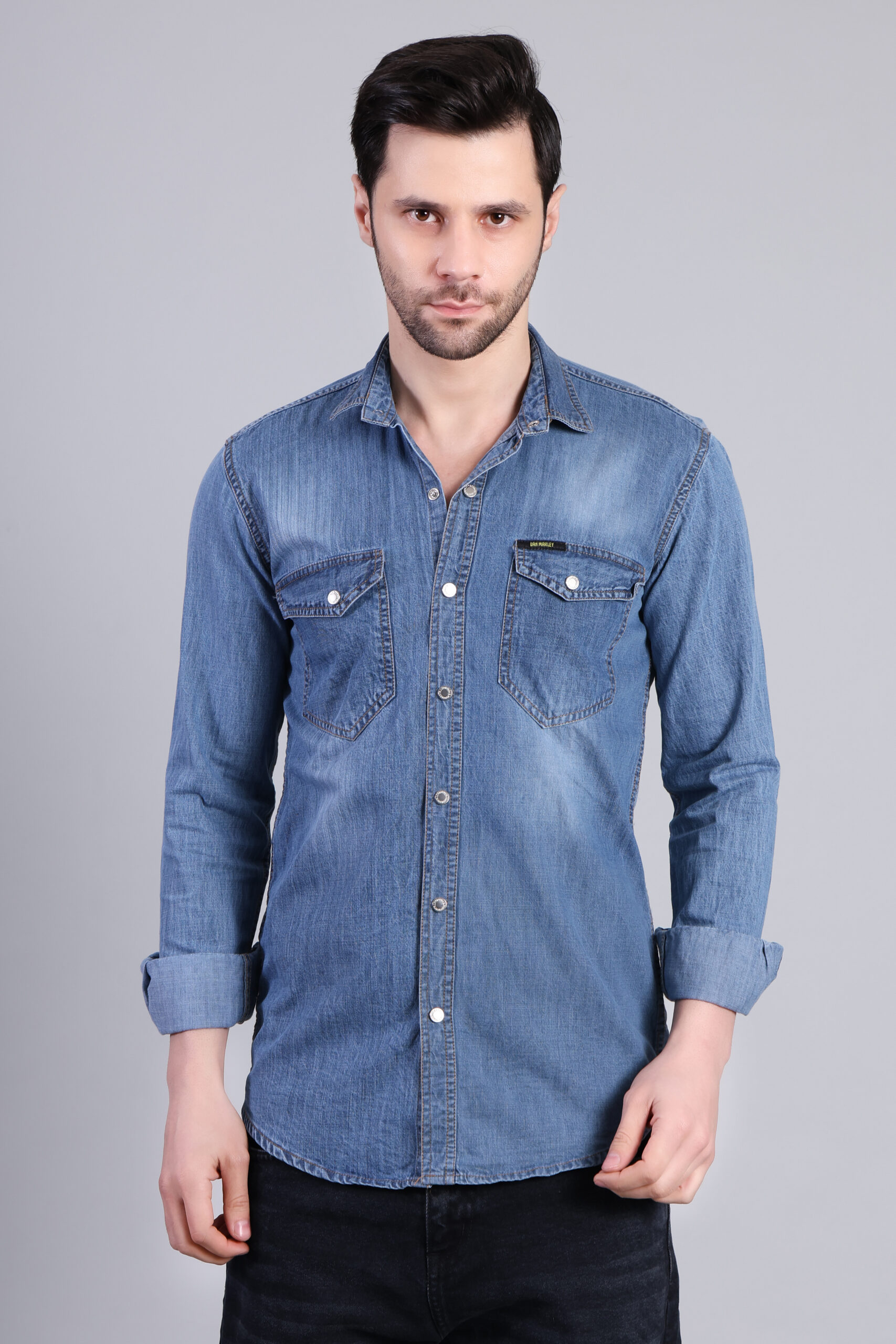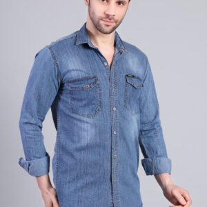 A rugged yet refined blue denim shirt crafted for everyday versatility. Designed with a structured fit and durable fabric, it delivers a confident look that pairs effortlessly with jeans or chinos—ideal for casual wear and smart styling.