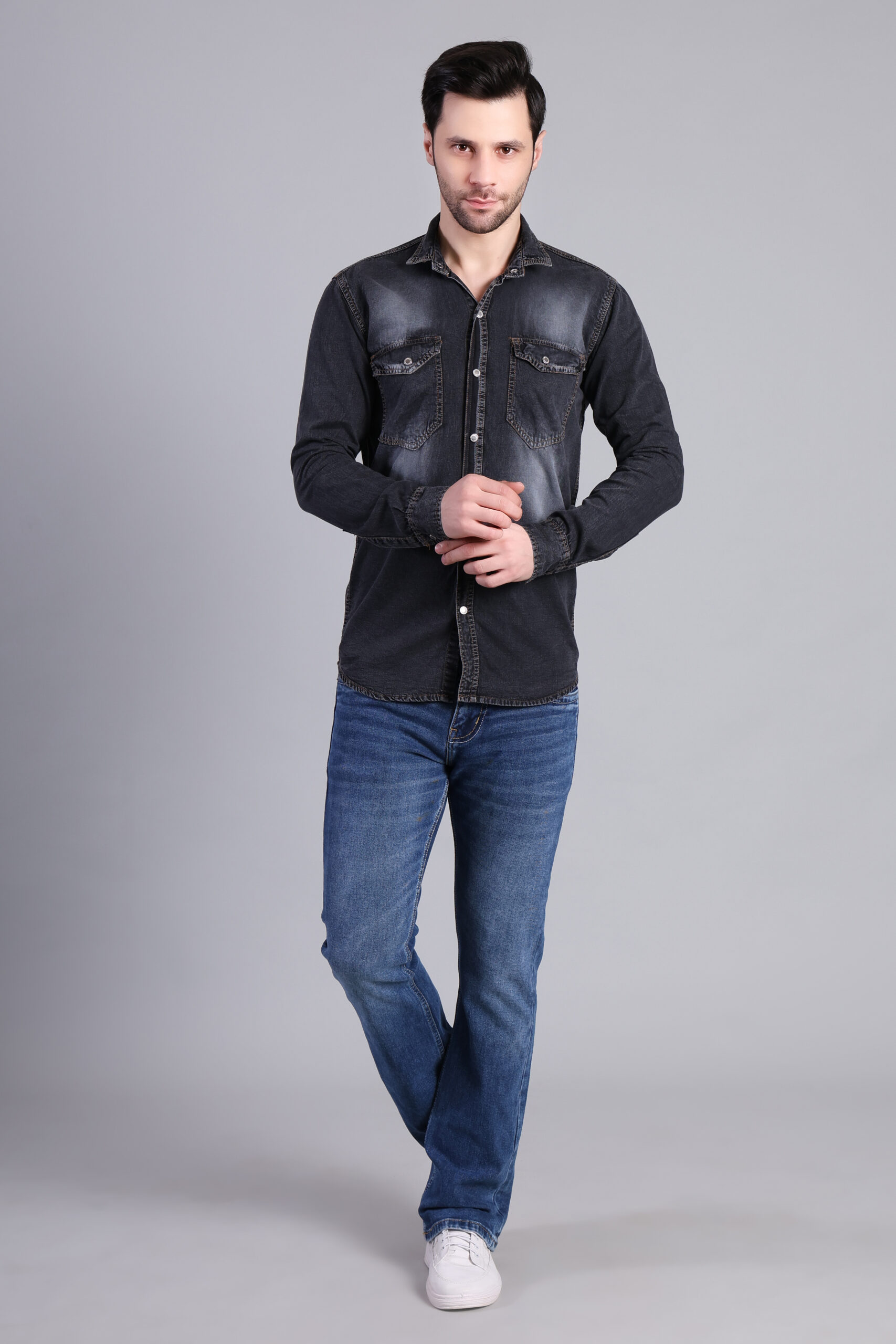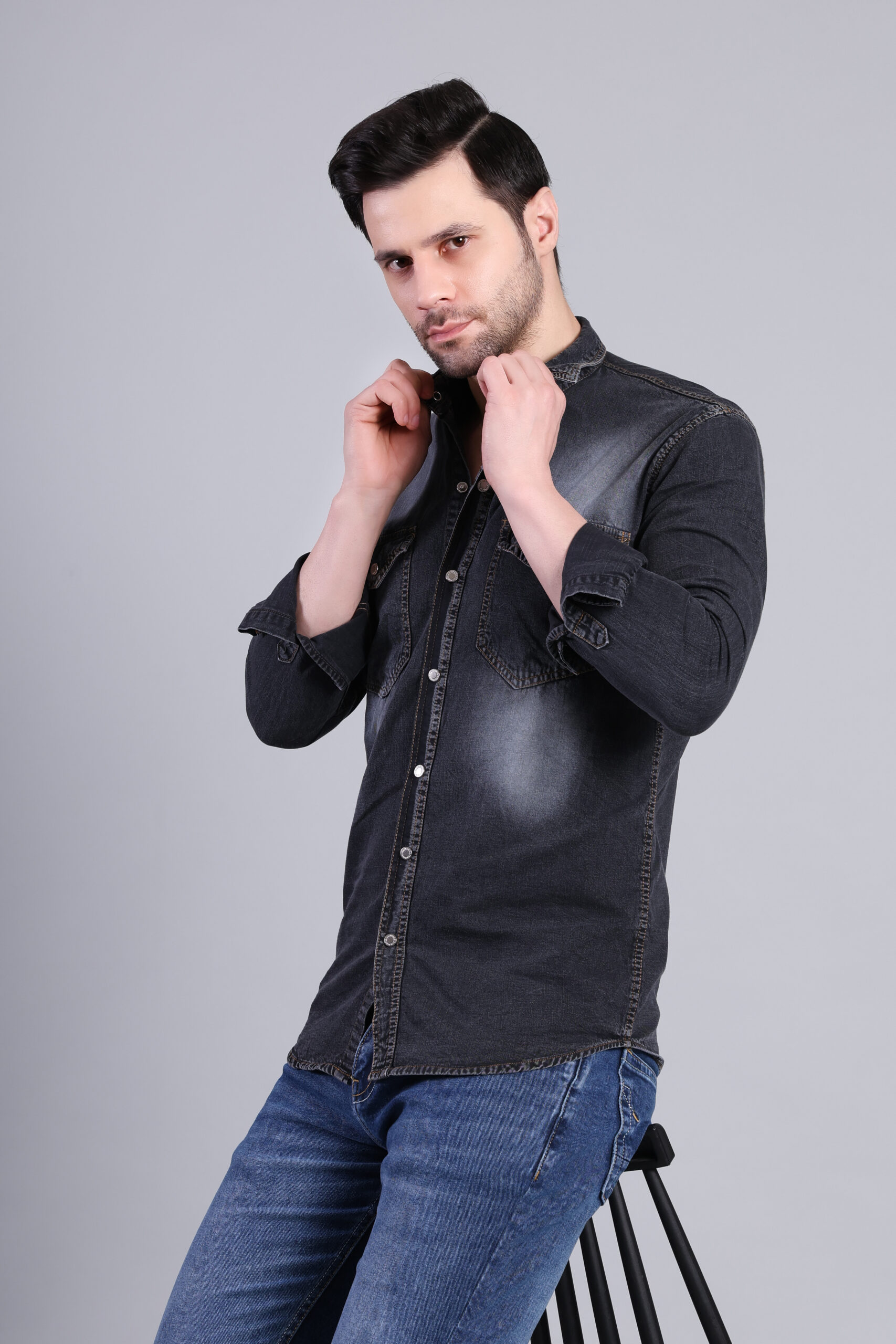 A bold black denim shirt featuring a subtle faded wash for a rugged, modern edge. Designed with a comfortable fit and durable fabric, this shirt delivers confident everyday style—perfect for casual evenings and street-ready looks.