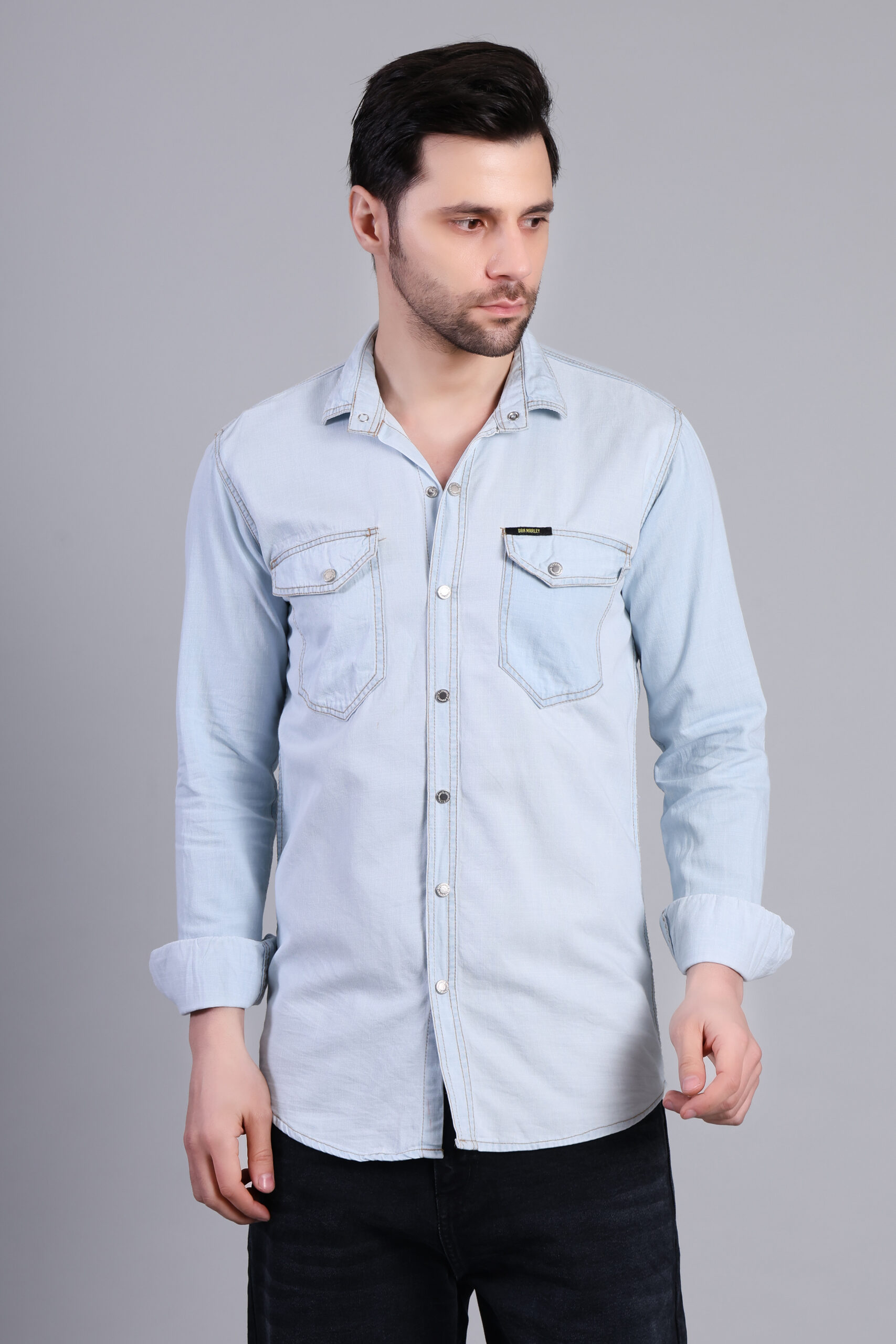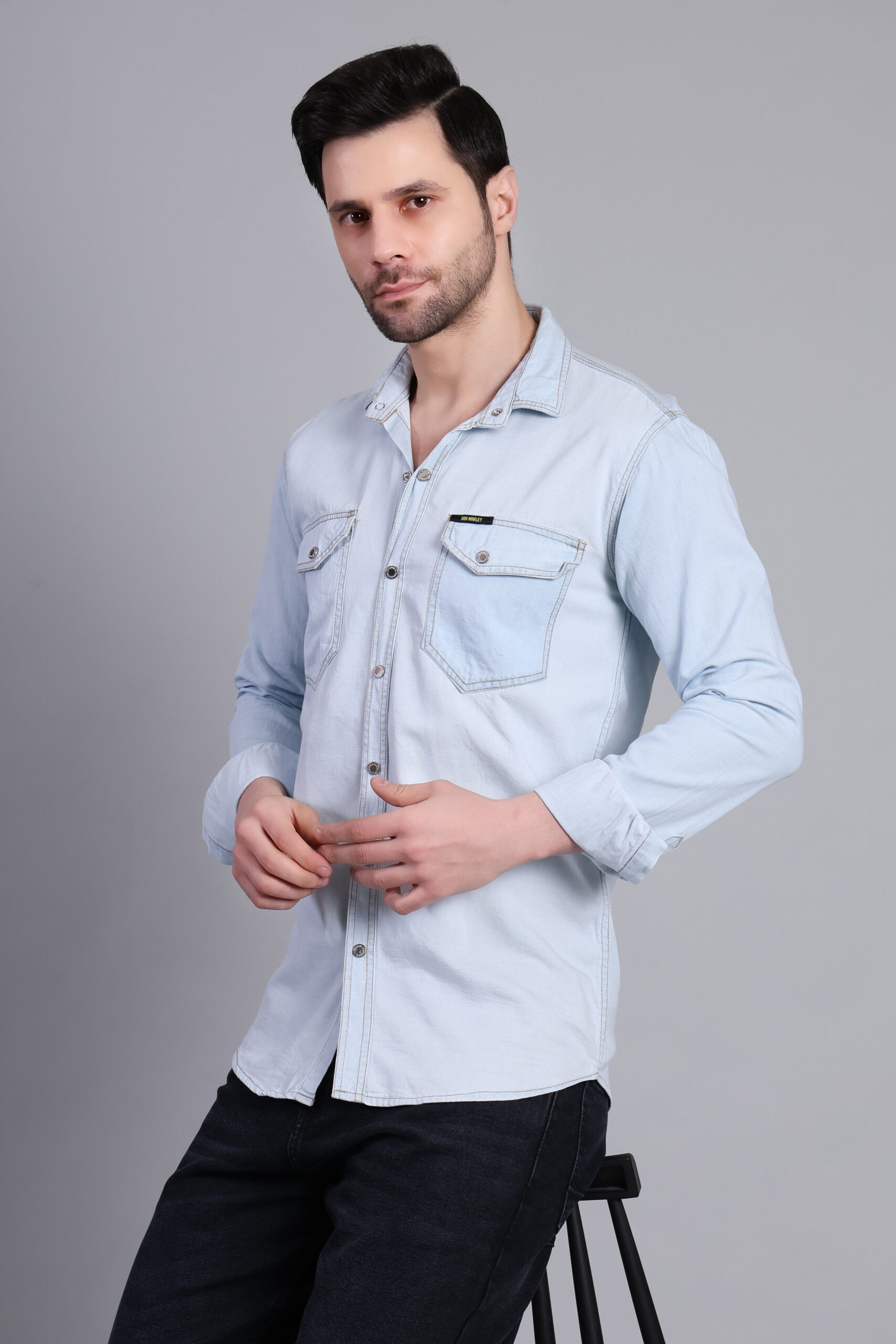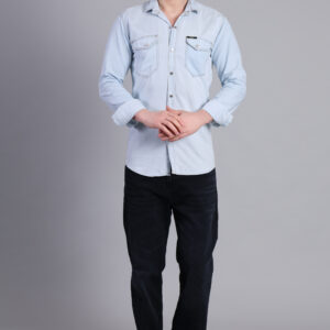 A clean and contemporary light blue denim shirt crafted for everyday comfort and effortless style. Designed with a structured fit and subtle detailing, this versatile piece pairs perfectly with dark or light denim for a sharp, confident look.