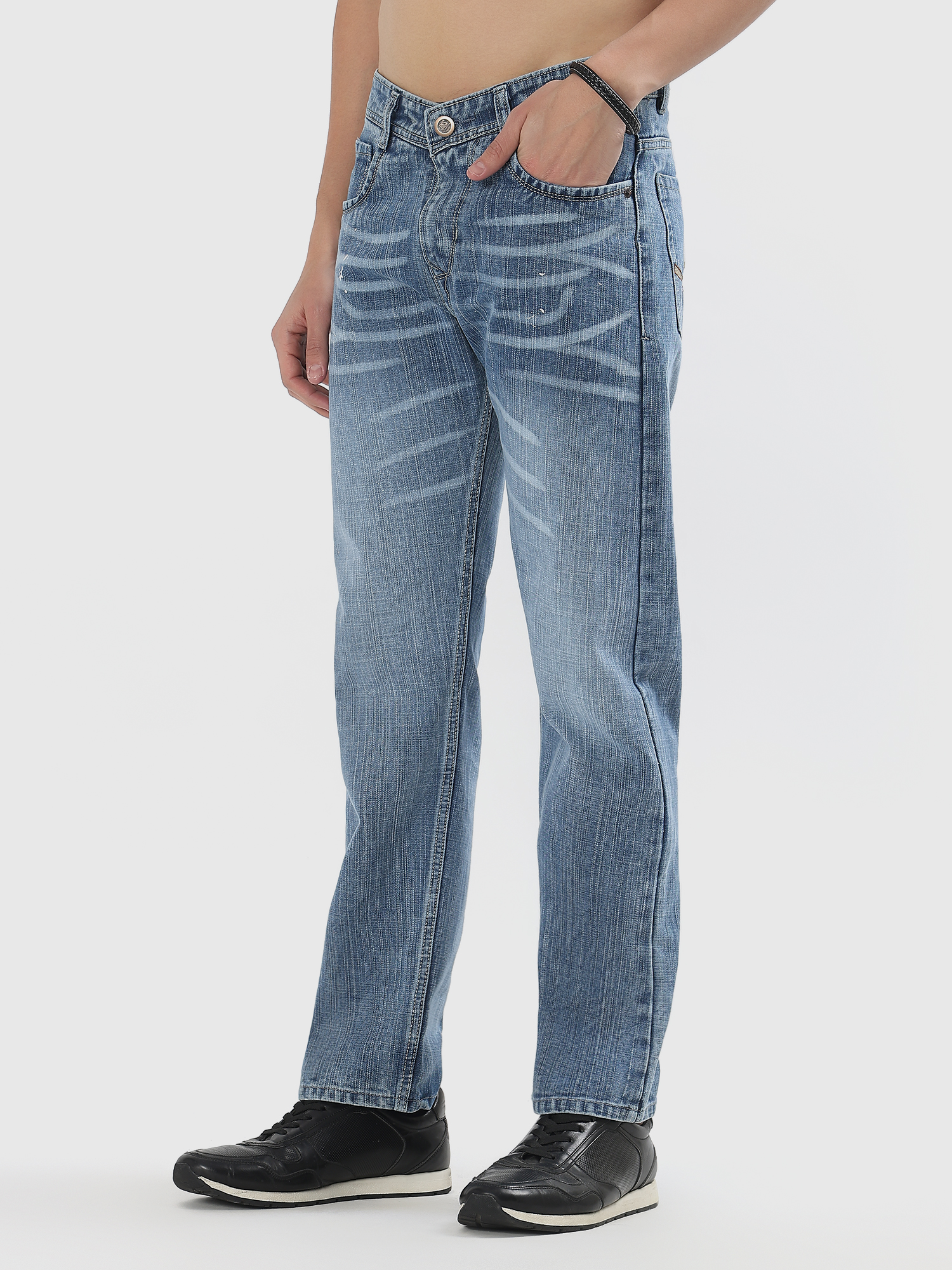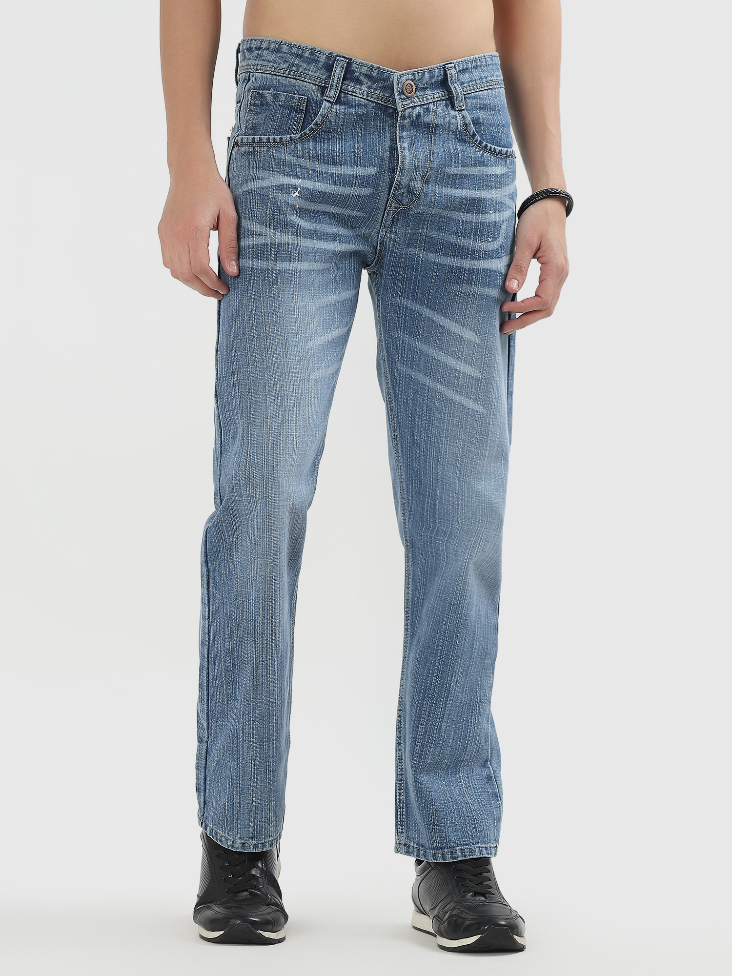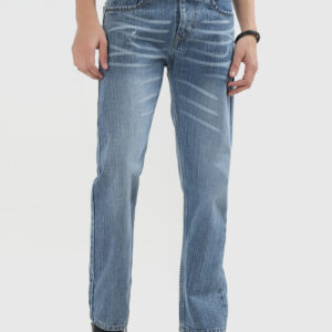 Mens straight fit Premium ice blue rugged denim jeans